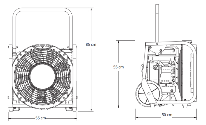 · GX350移動式排煙機是扇葉直徑為46cm的汽油驅動正壓風機;