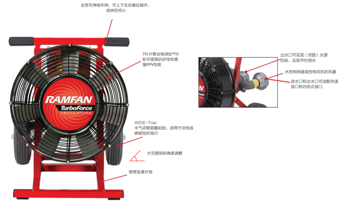 1、優蘭特WF390移動式消防排煙機為水驅動消防排煙機,安全防爆;
